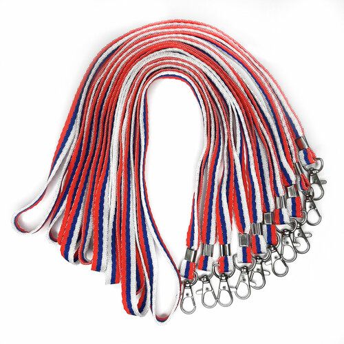 Найти - Лента для бейджа с карабином , триколор - 10 шт (Шнурок, держатель)
