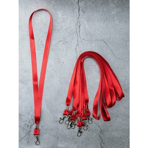 Найти - Лента для бейджа красная, 15 мм. Крепление карабин, 5 штук. (Шнурок, держатель для бейджа)
