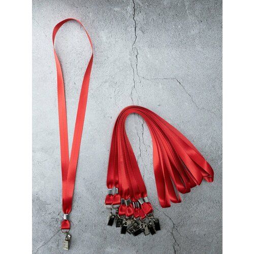 Найти - Лента для бейджа красная, 15 мм. Крепление клипса, 5 штук. (Шнурок, держатель для бейджа)