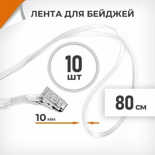 Найти - 10 шт. Лента для бейджей 10 мм белая, металлический клип, длина 80 см