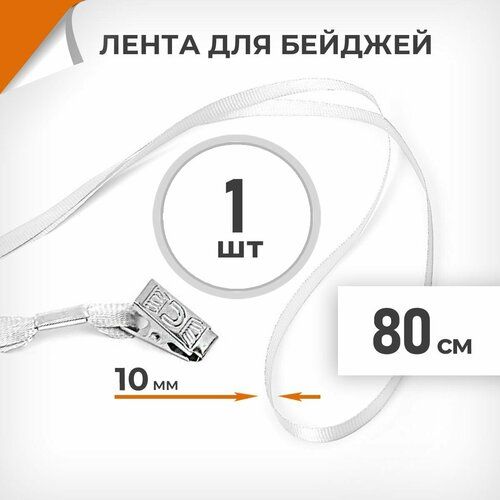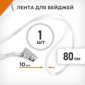 Найти - Лента для бейджей 10 мм белая, металлический клип, длина 80 см