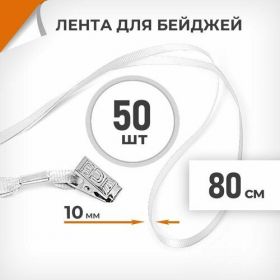 Найти - 50 шт. Лента для бейджей 10 мм белая, металлический клип, длина 80 см