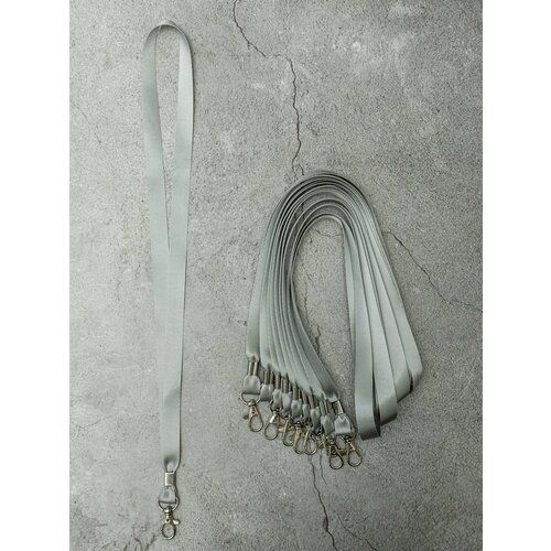 Найти - Лента для бейджа с карабином серая, ширина 15 мм - 10 штук.