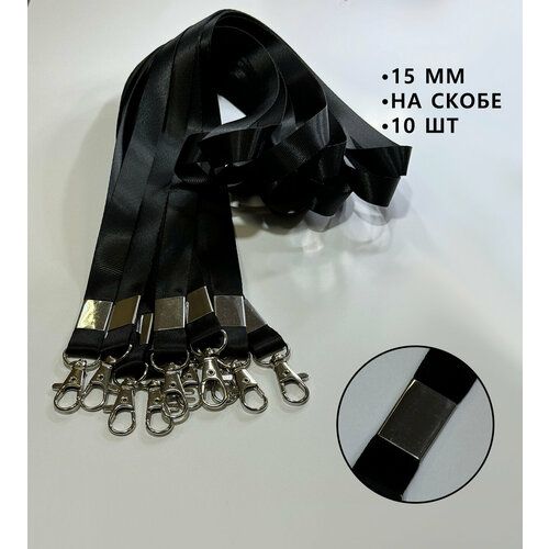 Найти - Ланъярд (лента) для бейджа с карабином 15 мм, 10 шт, черный