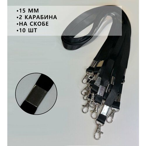 Найти - Ланъярд (лента) для бейджа с 2 карабинами 15 мм, 10 шт, черный