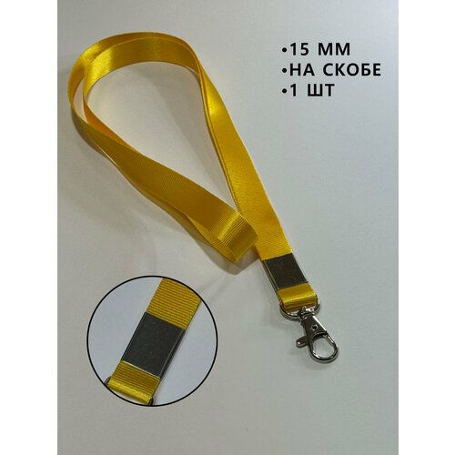 Найти - Ланъярд (лента) для бейджа с карабином 15 мм, 1 шт, цвет желтый
