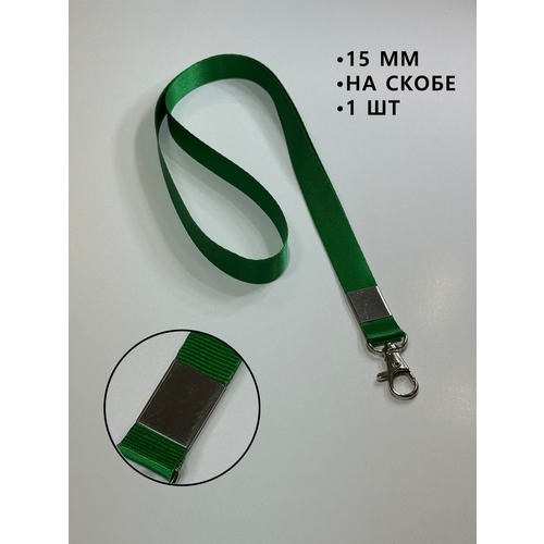 Найти - Ланъярд (лента) для бейджа с карабином 15 мм, 1 шт, зеленый