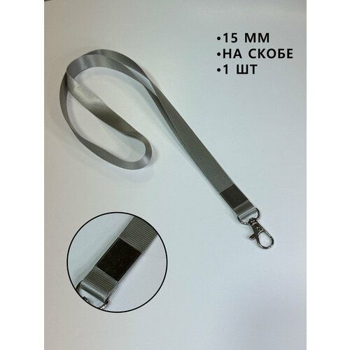 Найти - Ланъярд (лента) для бейджа с карабином 15 мм, 1 шт, цвет серый