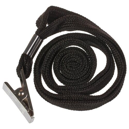 Съемный текстильный шнурок крепится к бейджу с помощью металлической клипсы. Цвет шнурка - черный.