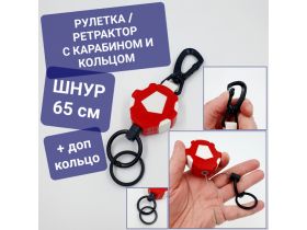 Брелок держатель рулетка усиленная / ретрактор для бейджа, ключей, пропуска / бейджика, 65 см, 2 кольца - черный/красный цвет 102914674746