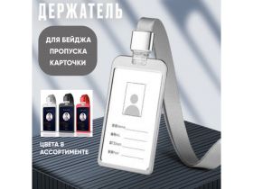 Держатель для бейджа/пропуска/карточки с длинной лентой (серебристый) 103665254241