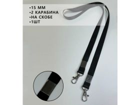 Ланъярд (шнурок) для бейджа с 2 карабинами 15 мм, 1 шт, черный 101981559096