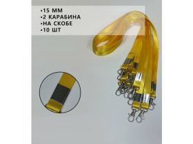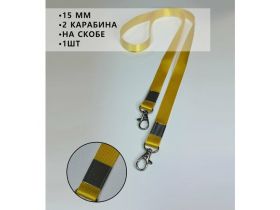 Ланъярд (шнурок) для бейджа с 2 карабинами 15 мм, 1 шт, желтый 102045562208