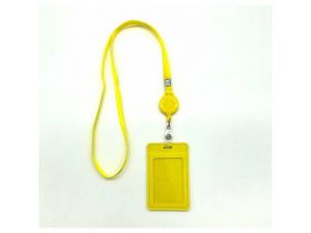 Держатель для бейджа на ленте с рулеткой двусторонний желтый 102452862671