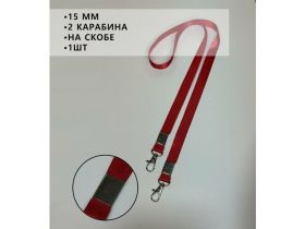 Ланъярд (шнурок) для бейджа с 2 карабинами 15 мм, 1 шт, красный 102310059945