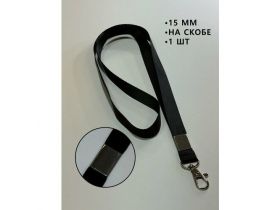 Ланъярд (лента) для бейджа с карабином 15 мм, 1 шт, цвет черный 4478984918