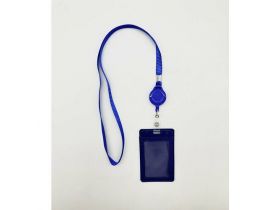 Держатель для бейджа на ленте с рулеткой двусторонний синий 102452862669