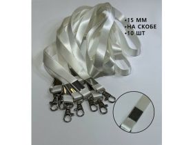 Ланъярд (шнурок) для бейджа с карабином 15 мм, 10 шт, белый 102306656942