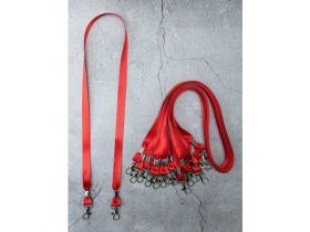 Лента для бейджа красная с двумя карабинами, 15 мм. 5 штук. (Шнурок, держатель для бейджа) 103117885570