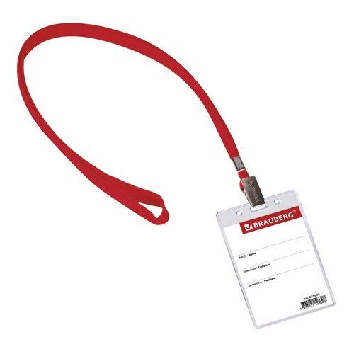Вертикальный бейдж BRAUBERG для именной карточки предназначен для идентификации сотрудников в компаниях, а также на семинарах, тренингах, презентациях и других мероприятиях. Бейдж на текстильной красной ленте используется для размещения именных карточек, пропусков, пластиковых карт. Карман из мягкого прочного пластика гарантирует долгий срок службы. Закрепляется лентой 45 см. Размер вкладыша 90х60 мм. Тип бейджа: классический, Тип крепления: лента, Положение: вертикальное, Количество в комплекте: 1 шт, Размер вкладыша (ДхШ): 90х60 мм, Размер бейджа (ДхШ): 107х65 мм, Серия: Vertical, Цвет крепления: красный, Материал корпуса: мягкий пластик, Цвет корпуса: прозрачный, Длина ленты/шнурка: 45 см. Код: 235699