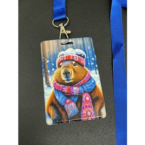 Найти - Чехол для бейджа карточки и пропуска с лентой Капибара в шапке