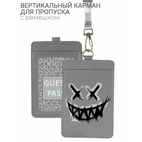 Найти - Чехол (бейдж) для пропуска и карт на ленте с принтом Mad Smile серый