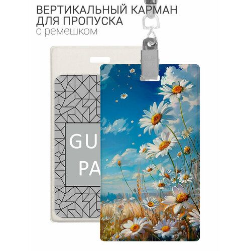 Найти - Чехол (бейдж) для пропуска и карт на ленте с принтом Ромашки на поле