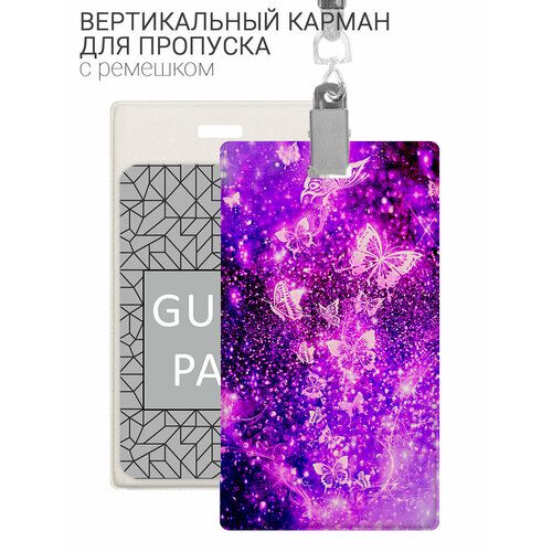 Найти - Чехол (бейдж) для пропуска и карт на ленте с принтом Фиолетовые бабочки