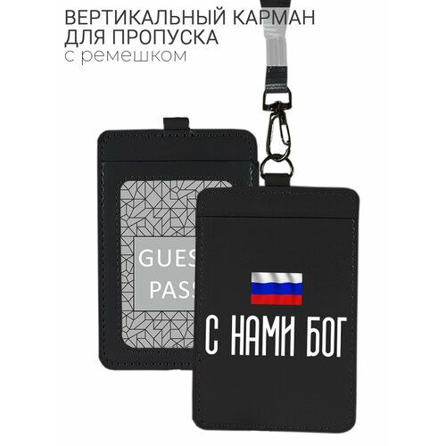 Чехол для пропуска на ленте - стильный и практичный аксессуар для хранения и переноски пропусков, проездных документов и любых карт размером 85 х 54 мм. Изготовленный из высококачественной экокожи, бейдж для пропуска обеспечивает надёжную защиту от пыли, грязи и механических повреждений. На передней части вертикального держателя для карт расположен карман с прозрачным окном, который отлично подойдет для карты школьника или абитуриента, пропуска офисного сотрудника, медицинского персонала, сотрудника банка, благодаря которому не придется доставать пропуск каждый раз. На задней части бейджика расположен дополнительный карман, который с легкостью разместит банковскую или кредитную карты, проездной, транспортную карту, ключ доступа в офис, школу или детский сад. Чехол на пропуск имеет привлекательный дизайн с использованием ярких цветов, что делает его заметным и запоминающимся. Яркий и красочный принт "С нами Бог" выполнен с использованием качественных и стойких красителей, поэтому изображение не теряет своей яркости и четкости даже после длительного использования. Изображение покрыто лаковым слоем, который придает принту особый блеск и объем, делая его еще более выразительным. Лента имеет общую длину 81 см и позволяет легко и быстро доставать чехол без необходимости убирать его обратно. Благодаря компактным размерам и лёгкому весу, чехол под пропуск легко помещается в кармане или сумке, не занимая много места. Стильный дизайн и разнообразие расцветок позволяют выбрать чехол, который будет соответствовать вашему стилю и предпочтениям. Этот аксессуар станет незаменимым помощником в повседневной жизни и подчеркнёт вашу индивидуальность.