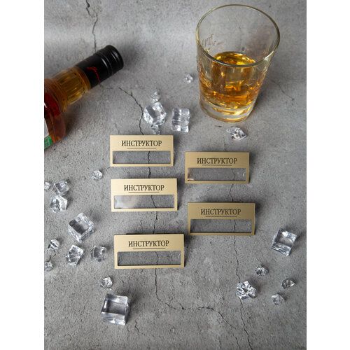 Найти - Бейджик (Бейдж) с окном, гравировка Инструктор, магнитное крепление, золотой - 5 шт.