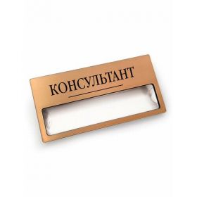 Найти - Бейдж пластиковый на магните с гравировкой Консультант, золотой. 1 штука.