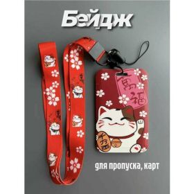 Найти - Держатель для бейджа / пропуска / карточки с длинной лентой котик Манэки-Нэко