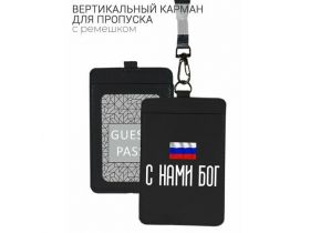 Чехол (бейдж) для пропуска и карт на ленте с принтом "GOD W" черный 103017768960