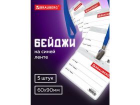 Упаковка 20 шт. Бейдж вертикальный (90х60 мм), на синей ленте 45 см, BRAUBERG, 235698 102925800708