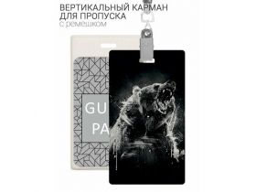 Чехол (бейдж) для пропуска и карт на ленте с принтом "Разъяренный медведь" 103017483454