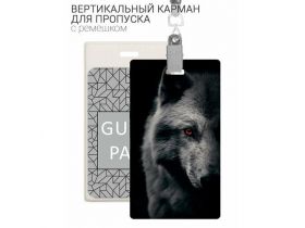 Чехол (бейдж) для пропуска и карт на ленте с принтом "Красноглазый волк" 103017483455