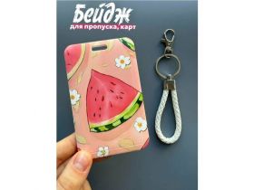 Держатель для бейджа / пропуска / карточки ягода фрукт Арбуз на коротком ремешке 4606706468