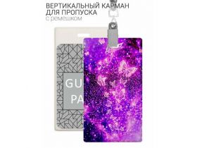 Чехол (бейдж) для пропуска и карт на ленте с принтом "Фиолетовые бабочки" 103017483461
