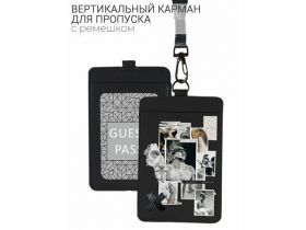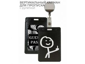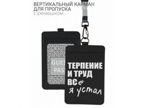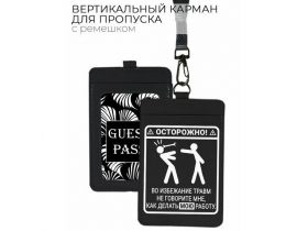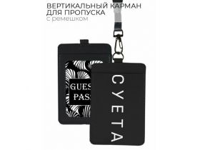 Чехол (бейдж) для пропуска и карт на ленте с принтом "Суета" черный 103492487518
