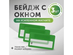 Комплект бейджей с окном на магните 3 шт Fleхpocket, цвет Зеленый 102126257628