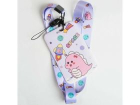 Держатель для бейджа, пропуска, карты с лентой / Розовый динозаврик в космосе 103103997133