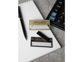 Бейджик (Бейдж) с окном, гравировка "Продавец", магнитное крепление, золотой - 5 шт. 103117904965