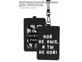 Чехол (бейдж) для пропуска и карт на ленте с принтом "Ной не ныл и ты не ной" черный 103492487519