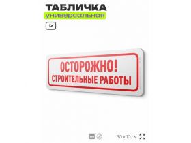 Табличка "Осторожно Строительные работы", на дверь и стену, информационная, пластиковая с двусторонним скотчем, 30х10 см, Айдентика Технолоджи 4609686599