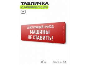 Табличка "Действующий проезд, машины не ставить", на дверь и стену, информационная, пластиковая с двусторонним скотчем, 30х10 см, Айдентика Технолоджи 4609672712