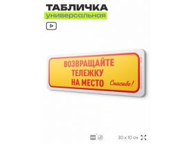 Табличка "Возвращайте тележку на место", на дверь и стену, информационная, пластиковая с двусторонним скотчем, 30х10 см, Айдентика Технолоджи 4609672713