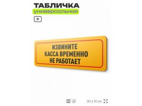 Табличка "Извините, касса временно не работает", на дверь и стену, информационная, пластиковая с двусторонним скотчем, 30х10 см, Айдентика Технолоджи 4609686584