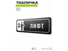 Табличка "Лифт", на дверь и стену, информационная, пластиковая с двусторонним скотчем, 30х10 см, Айдентика Технолоджи 4609686591