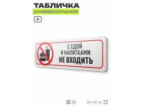 Табличка "С едой и напитками не входить", на дверь и стену, информационная, пластиковая с двусторонним скотчем, 30х10 см, Айдентика Технолоджи 4609686593