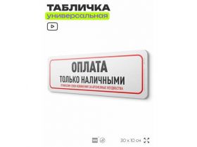 Табличка "Оплата только наличными", на дверь и стену, информационная, пластиковая с двусторонним скотчем, 30х10 см, Айдентика Технолоджи 4609672714